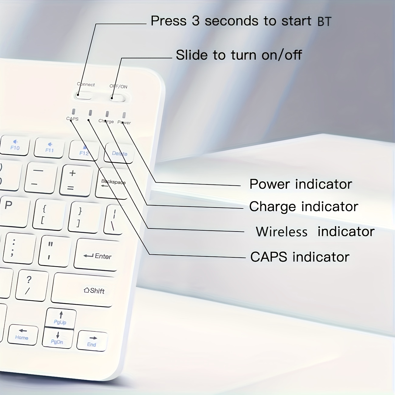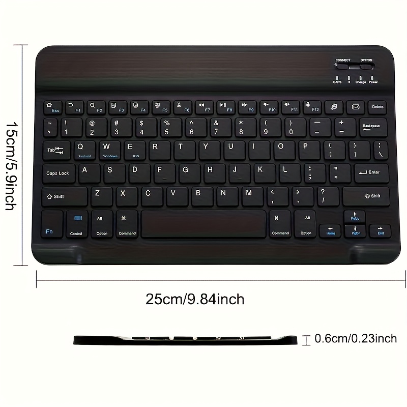 10-Inch Portable Wireless Keyboard, Ultra-Thin Rechargeable with USB-C Charging, Ambidextrous Design