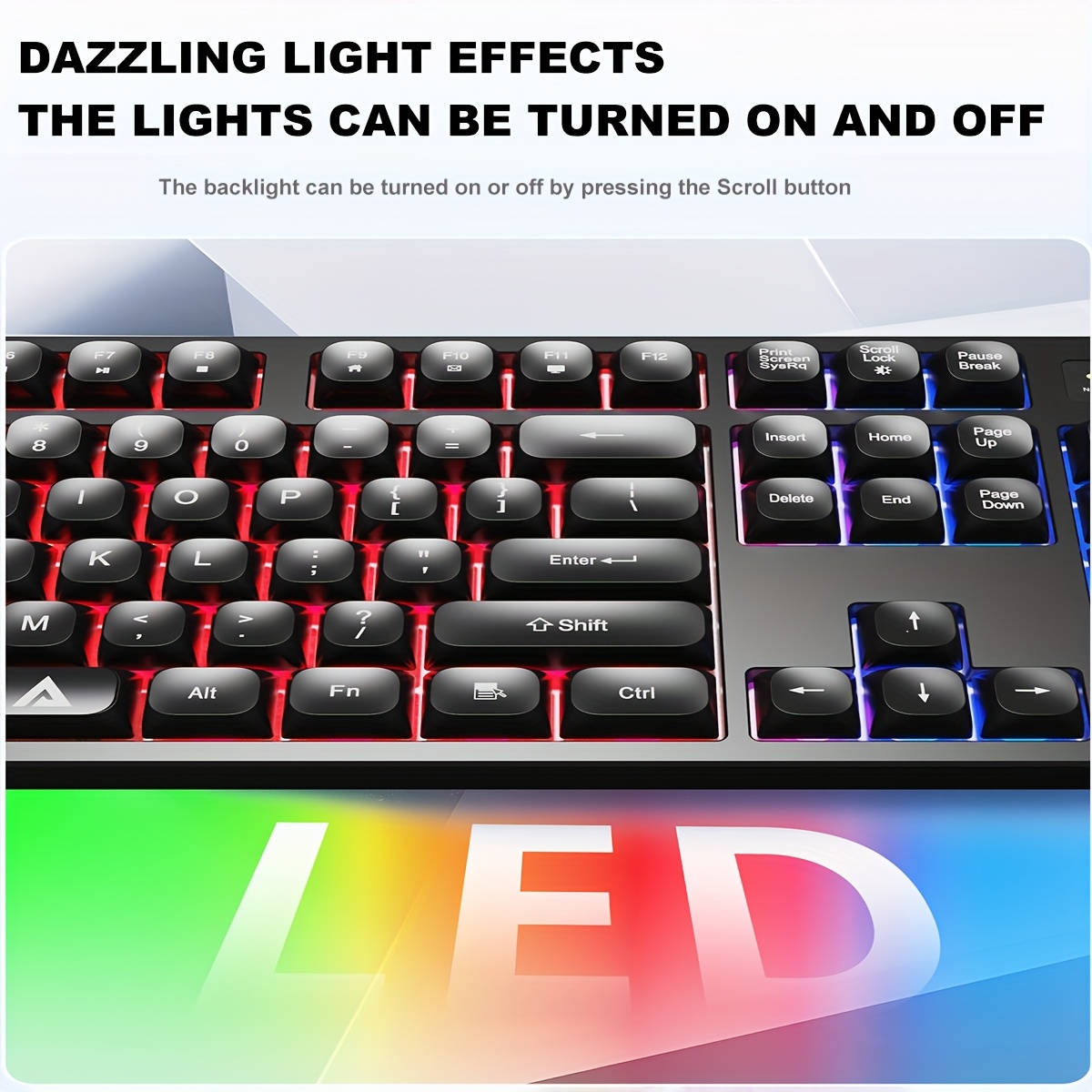 Gaming keyboard with cable USB plug and backlight, volume wheel - suitable for desktop computers, laptops and general office equipment.