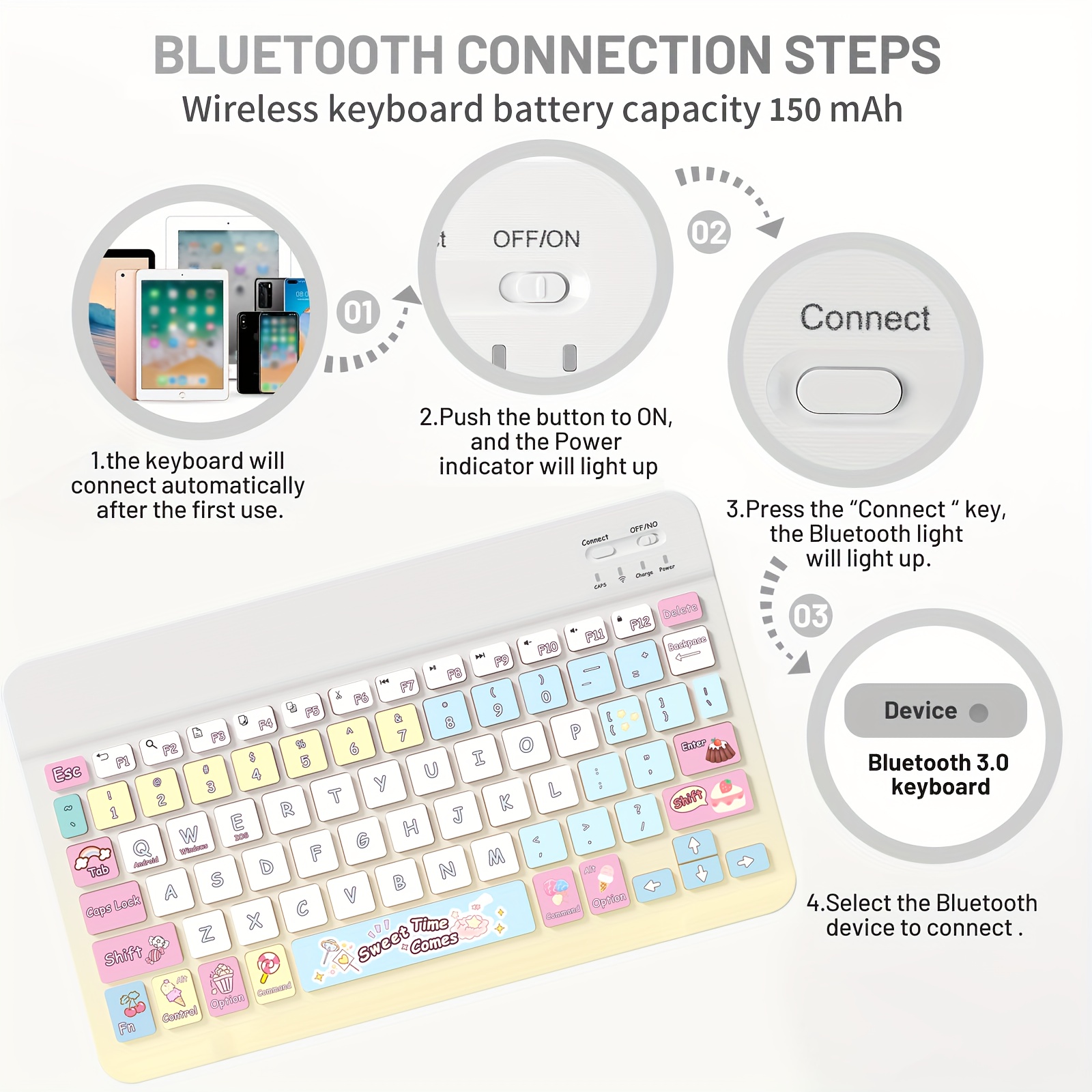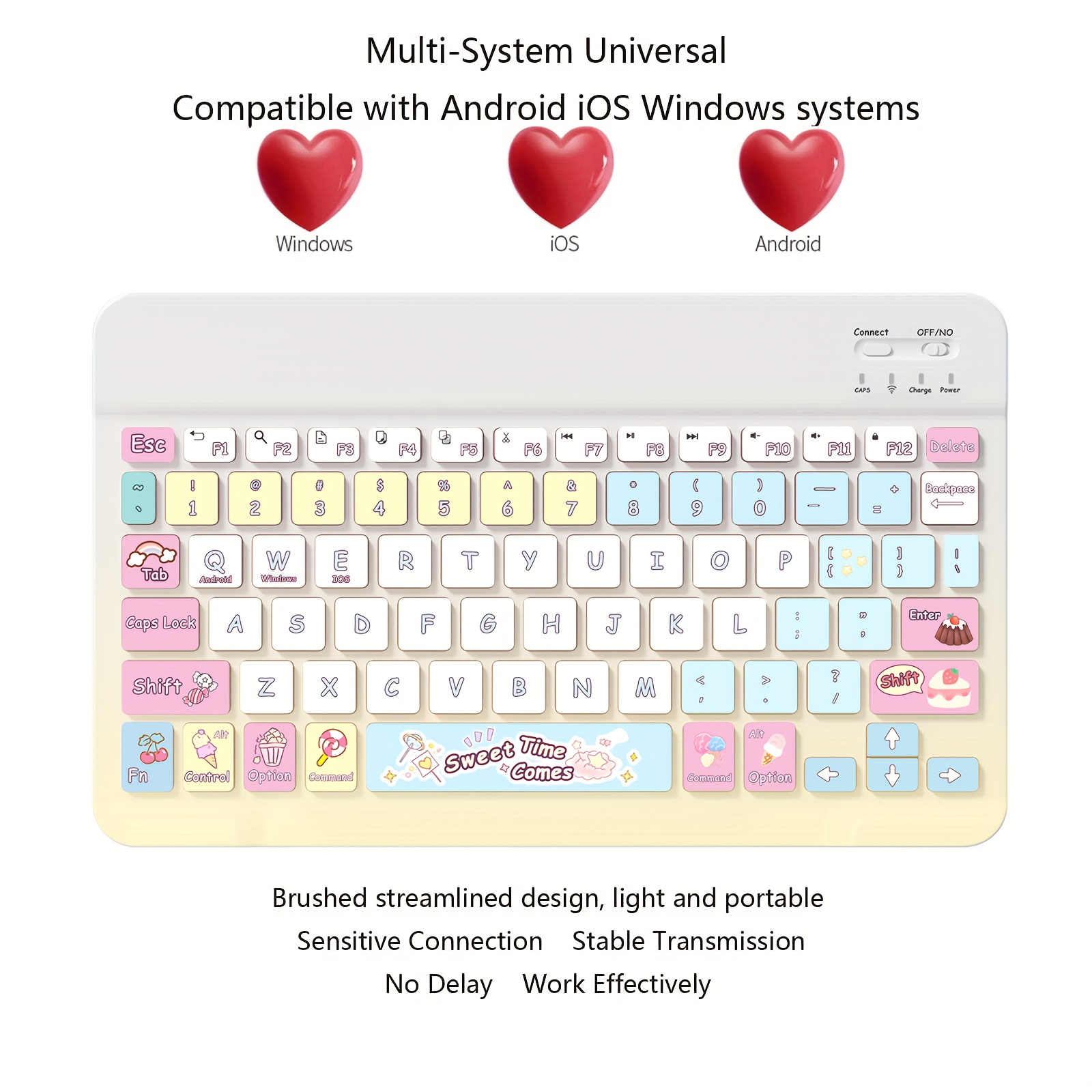 Ultra-Slim Rechargeable Bluetooth Keyboard Portable Compact Wireless Keyboard (150mAh) compatible with Samsung Galaxy Tab Tablet Android Windows Smartphone Cell Phone iOS iPad Cartoon pattern