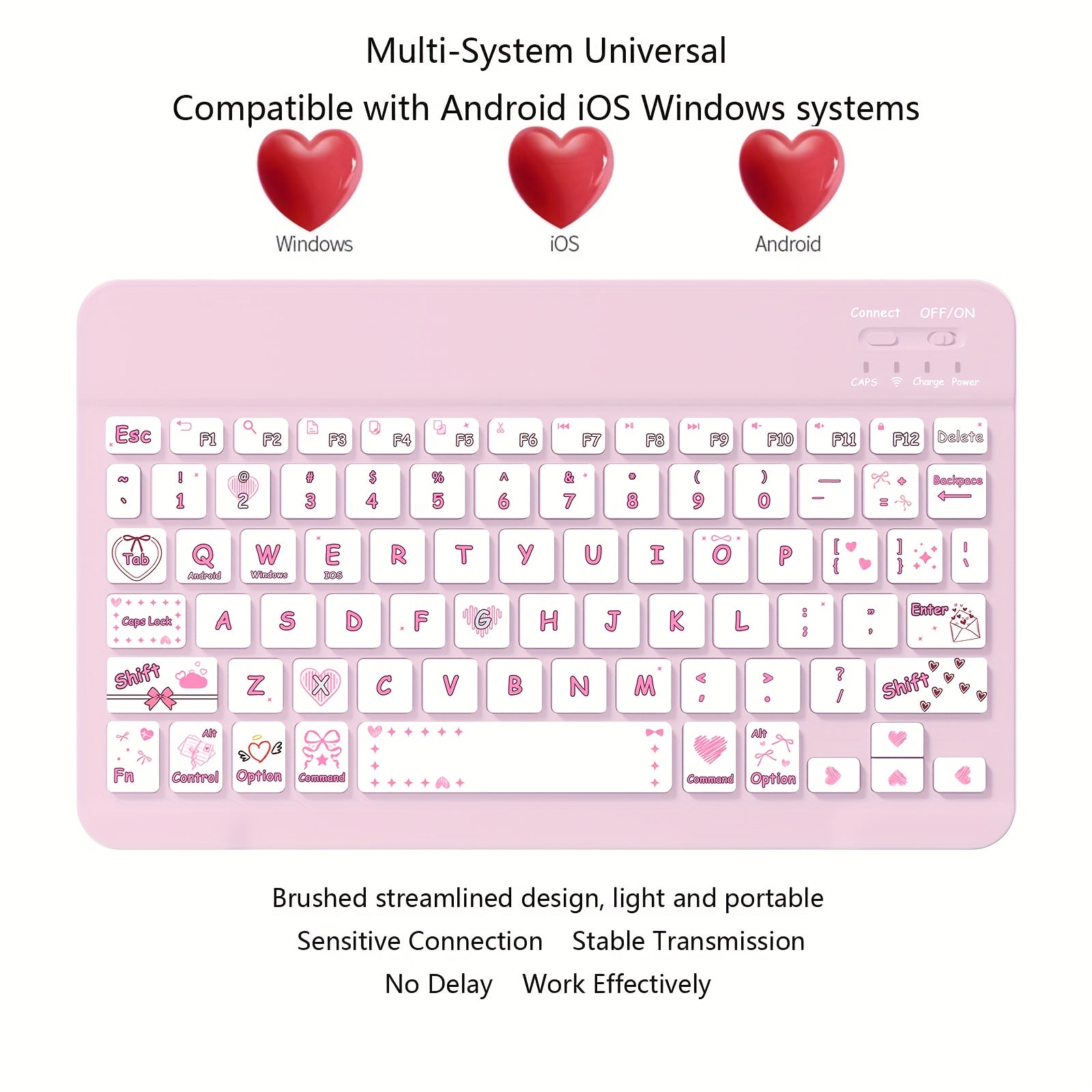 Ultra-Slim Rechargeable Wireless Keyboard with Cute Pastel Pink & Multicolor Cute Anime Design