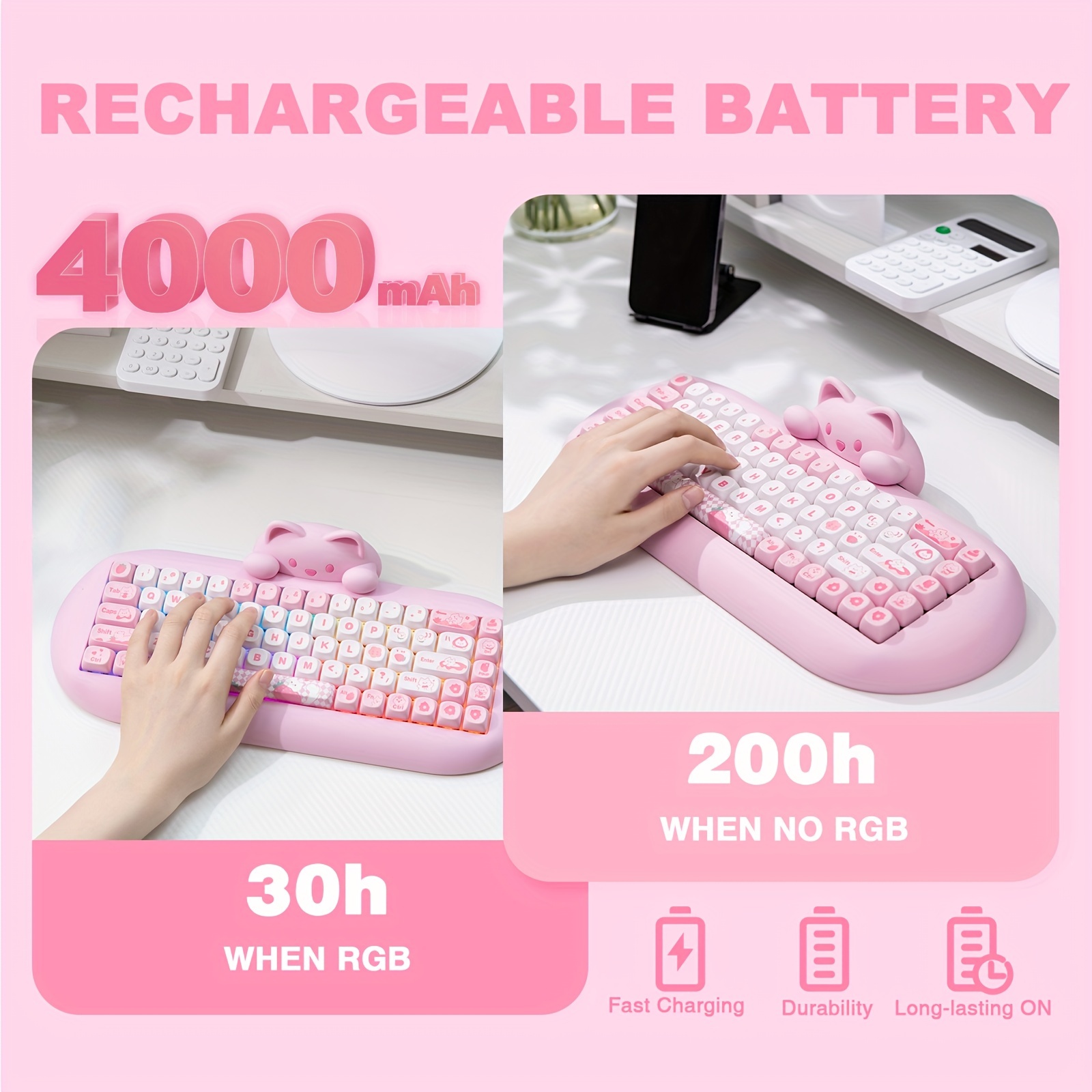 YUNZII C68 65% Wireless Mechanical Keyboard - Cute Cat Design, RGB Backlit